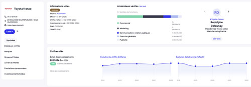Chaque fiche entreprise regroupe des informations précises et exploitables :